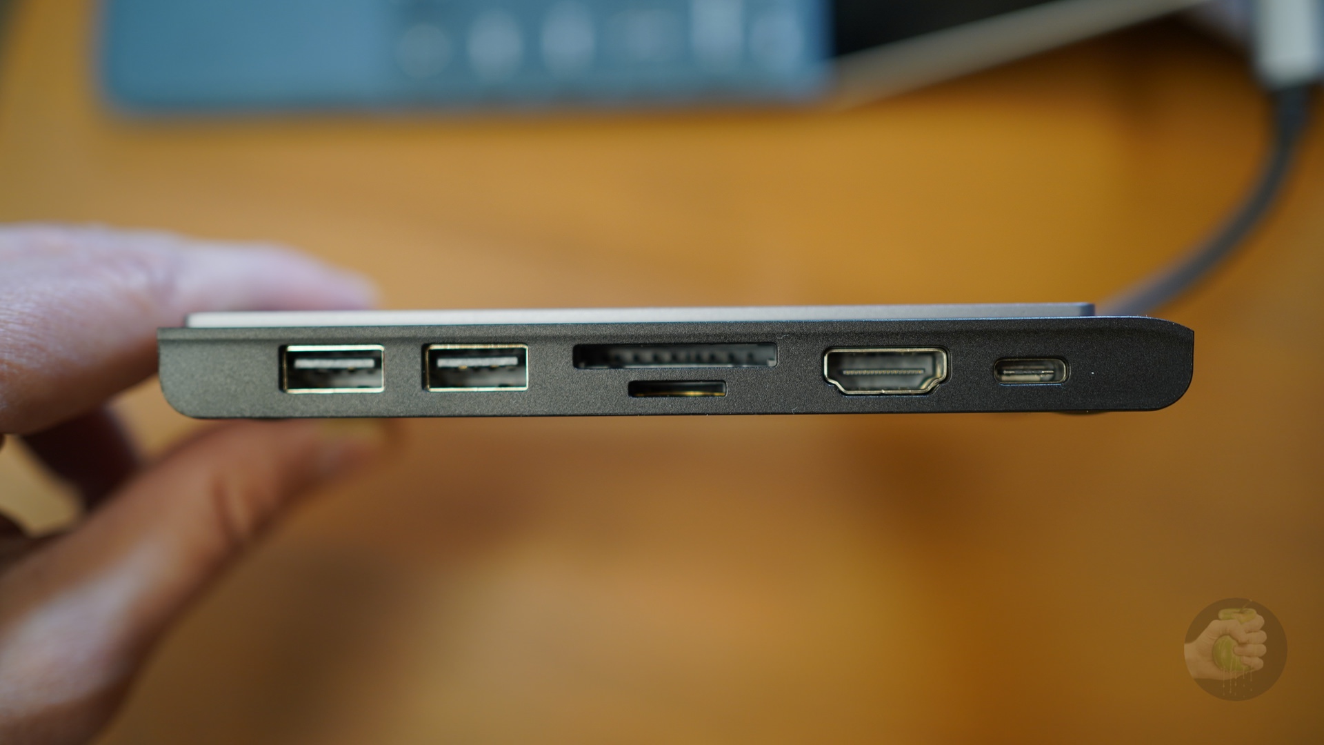 Мне аксессуар понравился по ряду параметров: он не перегревается во время работы, при этом у него высокая пропускная мощность до 70 Вт для достаточно умеренных размеров. Ещё он позволяет выводить видео высокого качества на внешний дисплей. Заодно решает вопрос с подключением дополнительных аксессуаров при помощи многочисленных разъёмов, да и проводной интернет тоже бывает полезен даже в нашу эпоху Wi-Fi-сетей.