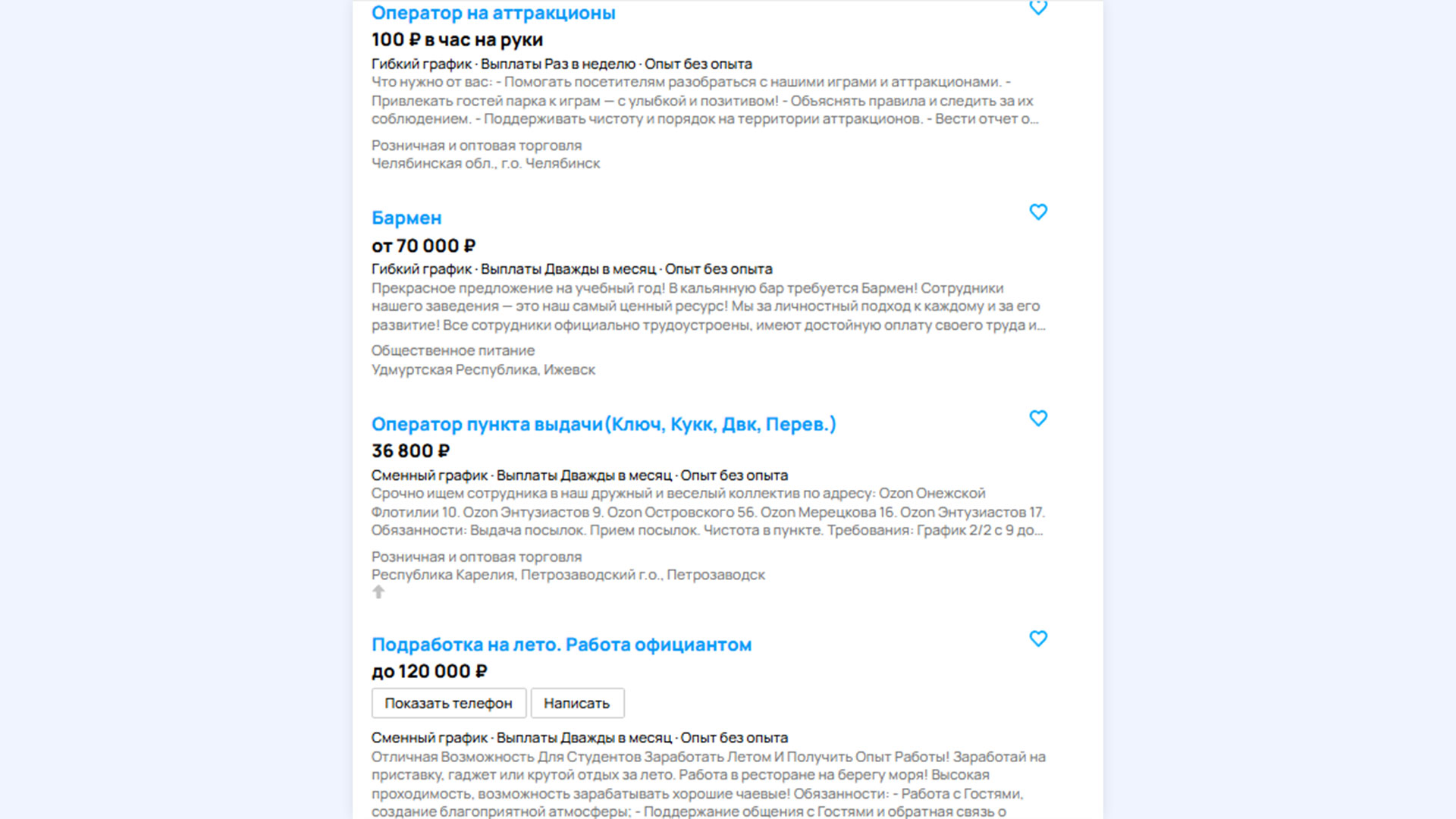 Чаще всего летом требуются официанты, бармены, операторы на аттракционы.