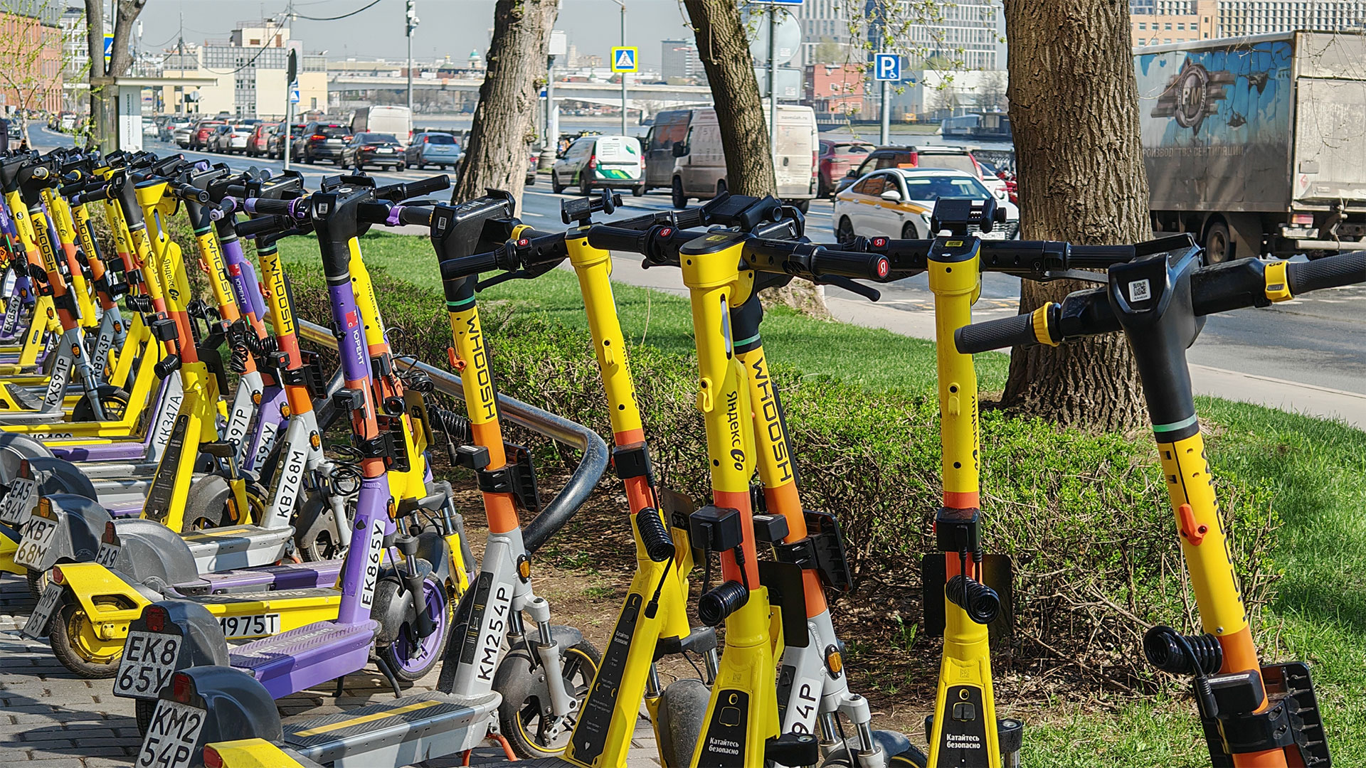 В крупных городах парковки электросамокатов встречаются повсеместно.