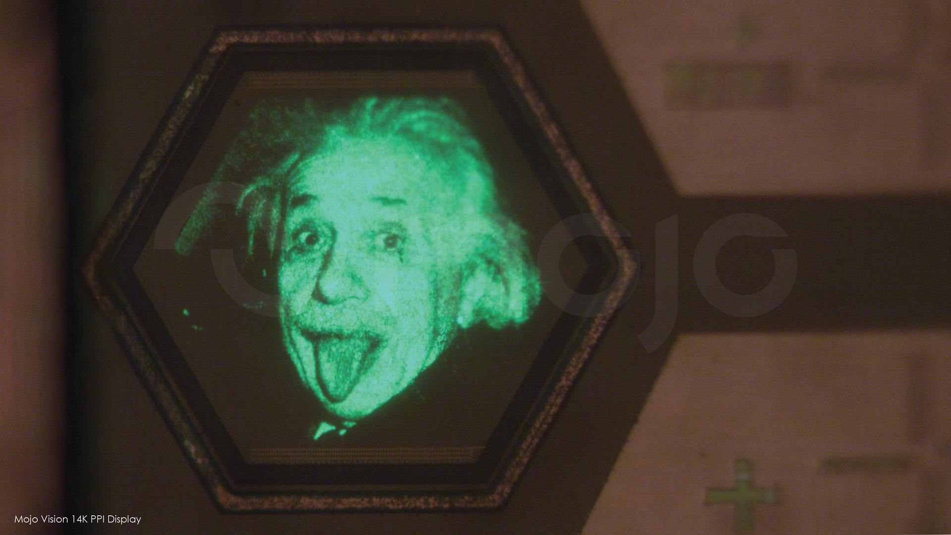 Центральная разработка Mojo Vision, доступная уже сейчас, — микроскопический дисплей. Его ширина меньше 0,5 мм. Плотность пикселей составляет рекордные 14 тысяч PPI (pixel per inch — пикселей на дюйм). Разглядеть изображение можно только под микроскопом: