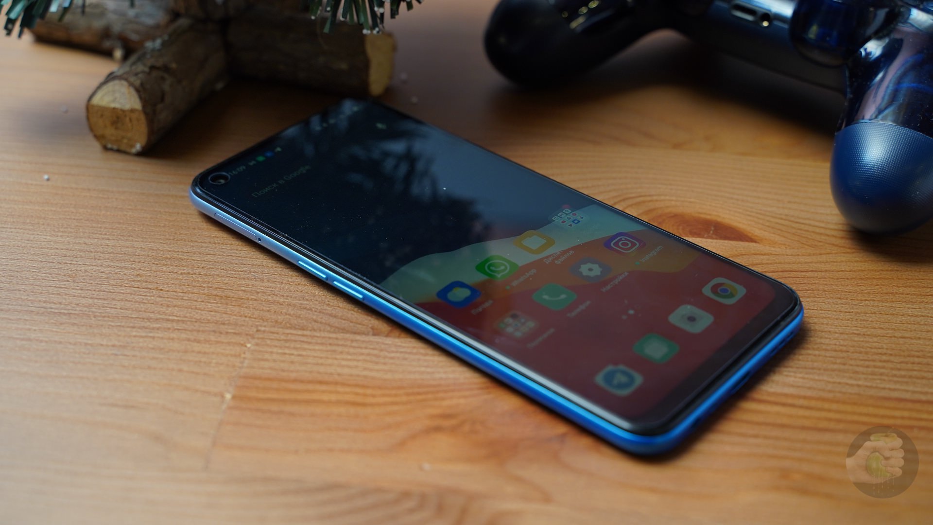 Если говорить про OPPO A53 коротко, то он «как все». Это довольно крупный телефон с глянцевым и марким корпусом. Под освещением задняя поверхность красиво смотрится, играет оттенками синего цвета. Обратная сторона такой поверхности — неизбежная маркость.