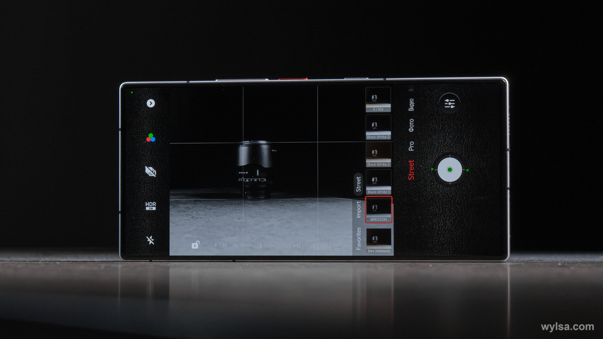 Тут доступны все три модуля, а также множество дополнительных фильтров. Как и несколько месяцев назад с Nubia Z50 Ultra, мне зашёл пресет BRESSON — высококонтрастный чёрно-белый фильтр с глубоким чёрным и плоскими светлыми элементами, вдохновлённый работами легендарного фотографа Анри Картье-Брессона.
