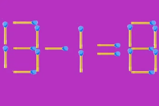 Перед нами неправильное уравнение: 13 – 1 = 8. Мы можем лишь одной спичкой так изменить запись, чтобы уравнение стало верным. Нельзя ломать или убирать палочки.