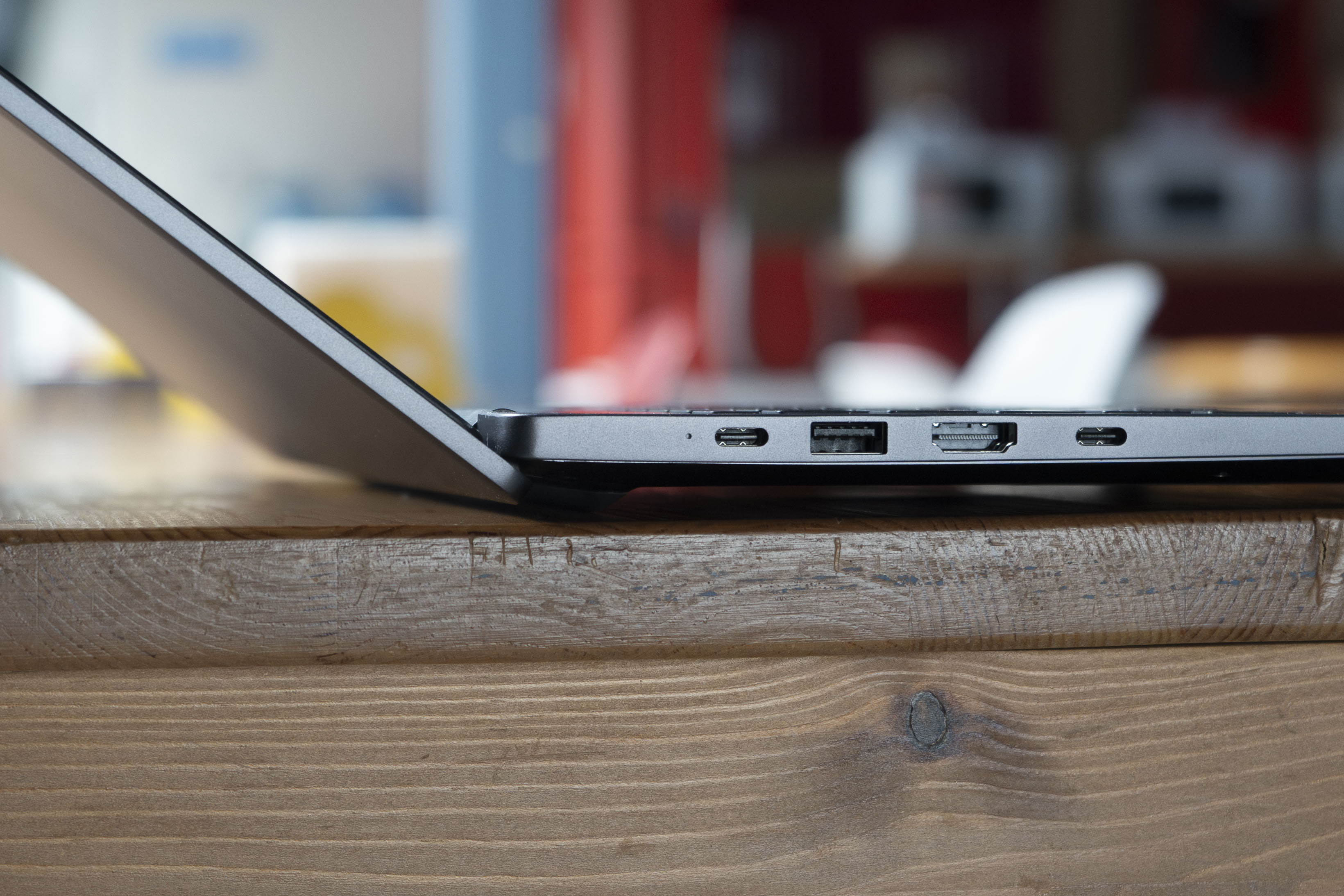 Только при взгляде на боковые грани понимаешь, что это достаточно тонкая 16шка – посмотрите на фотки, порты USB-A толщиной почти с боковины корпуса.