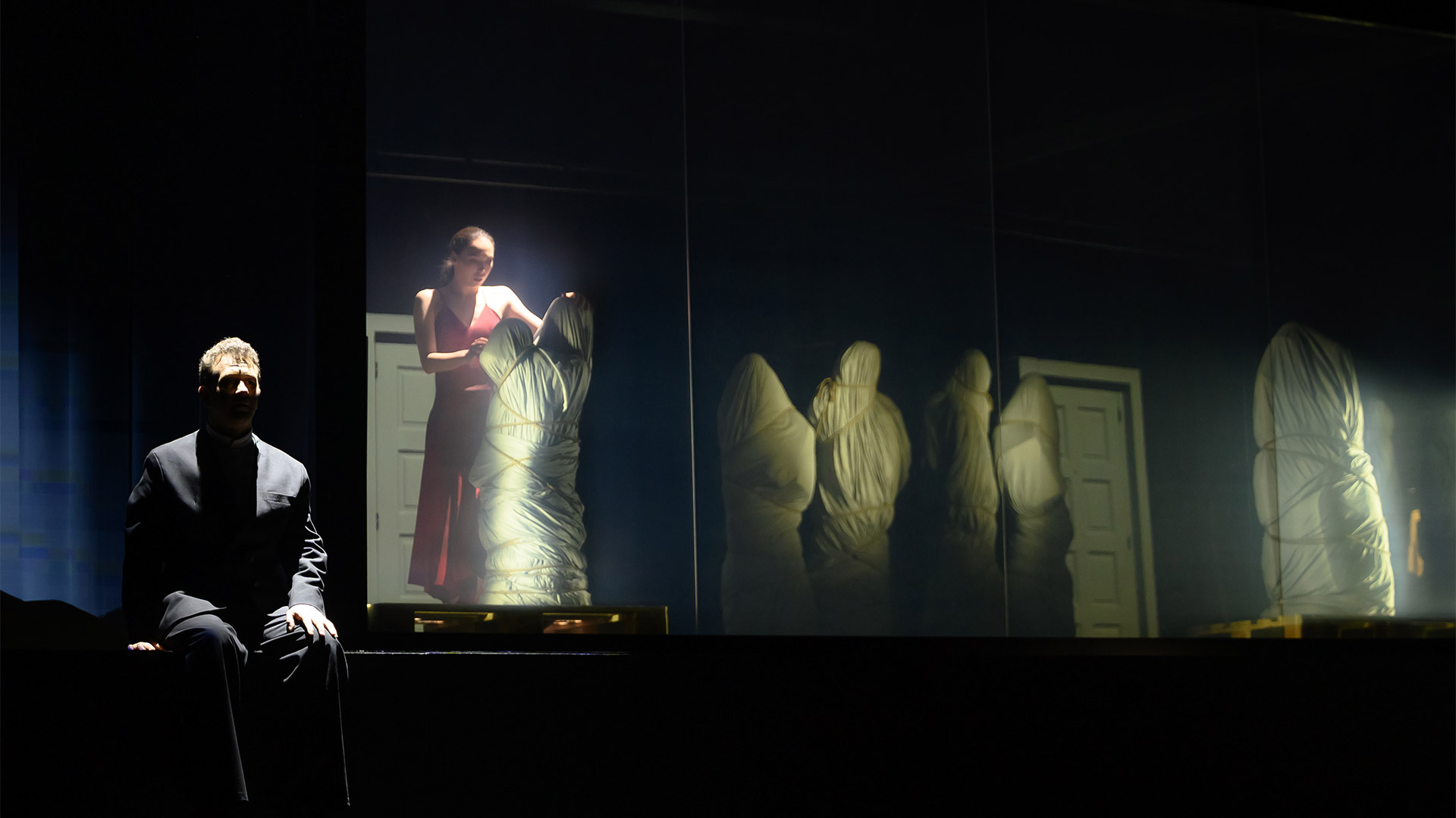 Как практически любой проект Курентзиса, «Страсть» открыта для интерпретации аудиторией. Она во всех смыслах многоголосна и полифонична: иногда бывает непросто уследить за всем, что происходит во время спектакля, который правильнее было бы назвать шоу. Над сценой на специальном экране транслируются фразы из либретто, на подмостках расположены два стеклянных куба, в которых артисты проживают свои сцены. Над ними под углом установлены зеркала, в которых, как в волшебном зазеркалье, дублируются передвижения танцоров.