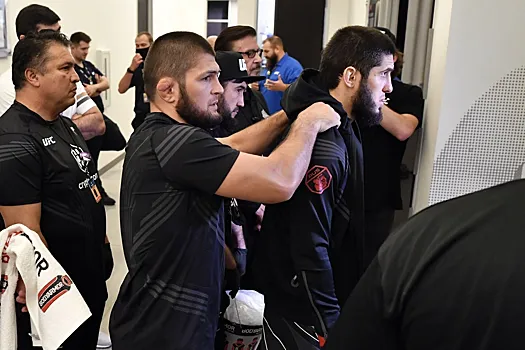 Хабиб Нурмагомедов. Нормально отвечай. Махачев. Веса [тренировочные стали] больше. Раньше я работал с пацанами, которые весили 83-84 кг максимум. А сейчас работаю с такими, как Мухаммед Берхамов. Он весит 91 кг.